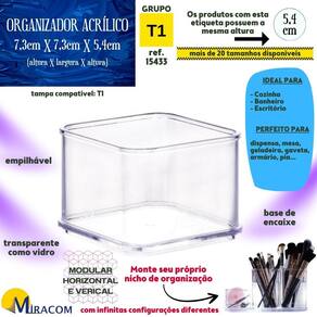 Dimensões e combinações milimétricas: Os tamanhos (comprimento e profundidade) dos organizadores formam um padrão único no mercado porque são produzidos com intervalos de 7,3cm, ou seja, são múltiplos de 7,3cm, o que faz com que formem um nicho perfeito com diferentes espaços de organização em um só lugar, dependendo da sua necessidade. Basta definir o espaço que deseja organizar e escolher o tamanho de cada caixa organizadora para formá-lo. Próprio para organização de objetos de diversos tamanhos.
