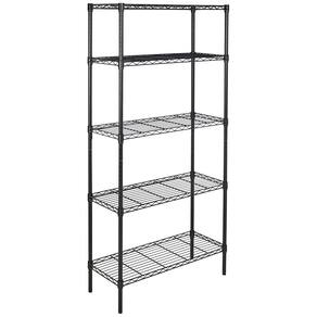 AçoOrganizador de prateleiras de armazenamento de aço pesado ajustável Amazon Basics de 5 prateleiras para cozinha, garagem, 36" L x 14" L x 72" H, preto
