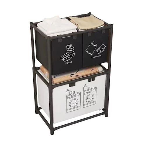 Organizador de Roupas para Lavanderia com 3 Cestos Removível Organizador de Roupas para Lavanderia com 3 Cestos Removível ===================================== Perfeito para quem busca otimizar o espaço e manter tudo no lugar, esse organizador possui três compartimentos espaçosos e identificados, ideais para separar roupas por categoria: meias, roupas íntimas e demais peças a serem lavadas.