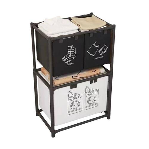 Organizador de Roupas para Lavanderia com 3 Cestos Removível Organizador de Roupas para Lavanderia com 3 Cestos Removível ===================================== Perfeito para quem busca otimizar o espaço e manter tudo no lugar, esse organizador possui três compartimentos espaçosos e identificados, ideais para separar roupas por categoria: meias, roupas íntimas e demais peças a serem lavadas.