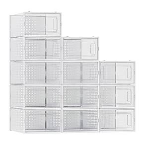 Organize seu armário ou corredor e mantenha seus sapatos livres de poeira e bem organizados com as caixas de armazenamento empilháveis Seseno. A caixa transparente facilita a visualização do conteúdo contido nela. Design empilhável para ajudar a maximizar seu espaço. Empilhe ou use-os lado a lado para manter seus sapatos organizados e fáceis de encontrar. Ideal para organizar pequenos itens diários, como sapatos, cachecóis, roupas de inverno, roupas, bolsas, artesanato, brinquedos, livros, jogos e muito mais. Ideal para armário, quarto, banheiro, lavanderia, sala de artesanato, lavabo, escritórios, sala de jogos, garagem ou qualquer cômodo da sua casa/apartamento/condómino/dormitório/RV ou trailer. Projetado de forma prática com orifícios de ventilação traseiros para permitir a circulação do ar e a prevenção de odores. Design dobrável para fácil armazenamento quando não estiver em uso. Desdobra-se rapidamente para um armazenamento fácil e conveniente. Feito de material plástico resistente e durável de alta qualidade. Paredes leves de plástico macio e moldura de porta de plástico rígido. Cada compartimento mede aproximadamente 13,4” × 9,5” × 5,7”. Feito para sapatos masculinos de tamanho médio de até 8 tamanhos