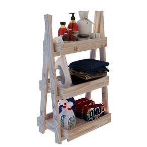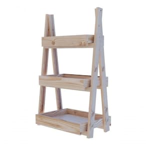 Estante arara com prateleiras e estrutura em madeira maciça de Pinus.