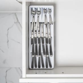 O organizador de talheres foi pensado para permitir diversas composições e proporcionar máximo aproveitamento de espaço nas gavetas, por isso, traz 5 opções de organização e ícones indicando a setorização dos talheres. Combine, encaixe e enxergue facilmente o conteúdo, mantendo tudo em ordem.