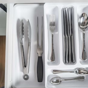 Com 5 segmentações e um extensor que aumenta a largura para 46 cm, permitindo segmentar os talheres de forma visual, simples e prática, mantendo-os limpos e protegidos.