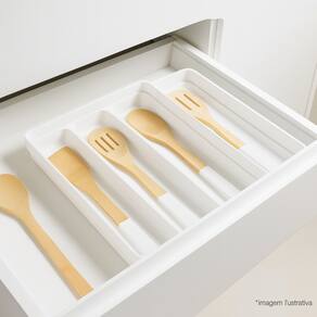 Descubra a praticidade e a elegância do Organizador de Talheres 3 Divisórias com Extensor. Este organizador foi projetado especialmente para otimizar o espaço da sua gaveta, permitindo que você armazene talheres maiores, como conchas e espátulas, de forma organizada e acessível. Ele conta com um extensor para se adaptar a sua gaveta.