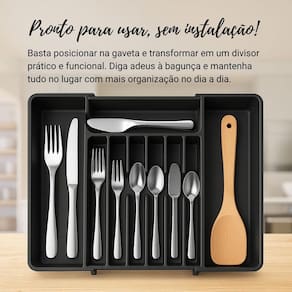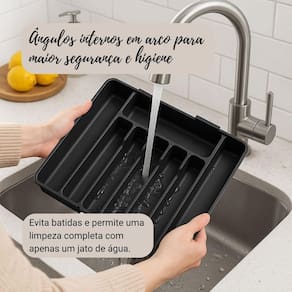 Alta capacidade: Com vários compartimentos, acomoda talheres, utensílios grandes e pequenos.