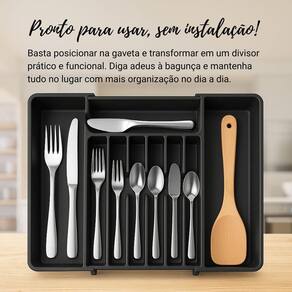 Alta capacidade: Com vários compartimentos, acomoda talheres, utensílios grandes e pequenos.
