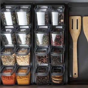 O organizador de temperos foi pensado para permitir diversas composições e proporcionar máximo aproveitamento de espaço nas gavetas, por isso, possui inclinação de 25° que facilita e visualização dos temperos, além de comportar 8 potes de 150ml's. Combine, encaixe e enxergue facilmente o conteúdo, mantendo tudo em ordem.