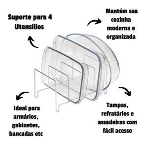 Suporte para Refratários é ideal para manter sua cozinha organizada, deixando suas tampas, refratários e assadeiras organizadas e com fácil acesso, ideal para armários, gabinetes, bancadas etc. O estilo moderno do Suporte para Refratário deixa sua cozinha moderna e organizada