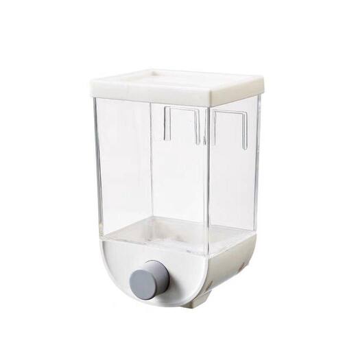 Visibilidade do conteúdo: corpo transparente. Tampa com vedação: protege contra umidade, poeira e insetos. Botão dosador frontal: libera a quantidade exata sem bagunça. Compacto e resistente: instala na parede para economizar espaço. Materiais de alta qualidade e fácil de limpar. Versátil: ideal para arroz, feijão, grãos, cereais, ração, café, farinha, granola, macarrão e mais. Adequado para uso doméstico ou pequenos comércios.