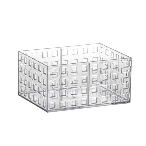 Organizador Empilhável Quadratta 16X11,5X8Cm Cristal Organizador Empilhável ideal para organizar escritórios, lavanderias, cozinhas e closets. Organize seus objetos de forma mais prática e amplie a organização empilhando. Elegante e resistente. Design arrojado. Perfeito para sua casa. Ficha técnica - Material: Plástico - Com tampa: Não - Largura: 11,5 - Forma: Retangular Marca: Não Informado Ean: 7898943563705