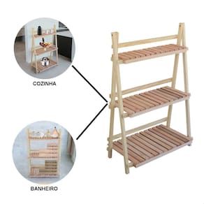 Com três prateleiras ripadas removíveis, ele oferece praticidade, permitindo ajustes conforme a necessidade. As prateleiras possuem travas para maior segurança no uso.