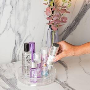 Características: - 18cm (diâmetro) x 5cm (altura) - Material: Acrílico - Para maquiagens ou até sua cozinha.