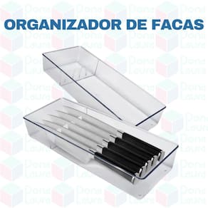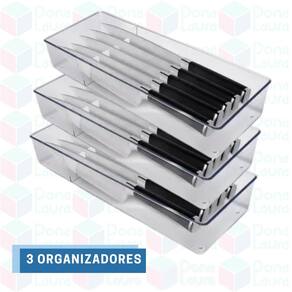 CONTEÚDO DA EMBALAGEM: 03 Organizadores com 5 divisórias segundo as descrições acima. NÃO VEM ACOMPANHADO DE FACAS, IMAGENS MERAMENTE ILUSTRATIVAS.
