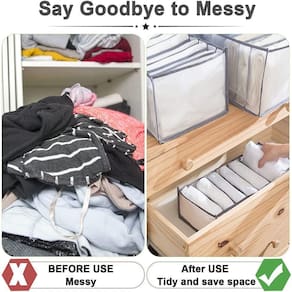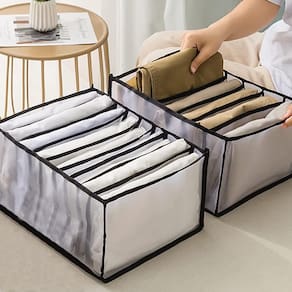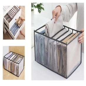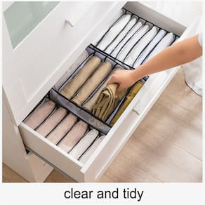 organizador de roupas de guarda-roupa para jeans tem 36x25x20cm. As 7 divisórias são maiores que outros organizadores de roupas, perfeitas para calças de diferentes espessuras. Com os divisores, a caixa de armazenamento pode manter os itens arrumados e arrumados, fácil de encontrar as coisas necessárias. Material de alta qualidade: este organizador de gaveta é feito de malha de nylon com acabamento fino, costuras macias e durabilidade. O material é de náilon espesso e borda de tecido oxford, que não é fácil de deformar e não desmorona após o uso. Também usamos material de nylon de alta qualidade, é ecologicamente correto e inodoro. Dobrável e fácil de limpar: os organizadores de gaveta para roupas são projetados com ventilação de malha fina, limpos e frescos, o recurso de fio líquido permite que você encontre facilmente as roupas de que precisa e é fácil de dobrar, lavar e secar ao ar livre, que efetivamente reduz o odor das roupas e mantém as roupas frescas. Você pode usar água para limpar o organizador de roupas facilmente ou lavar na máquina de lavar. Design dobrável: com zíper inferior e design dobrável, os organizadores de gaveta para roupas podem ser dobrados quando não estiverem em uso. Os organizadores de armários e guarda-roupas não ocupam muito espaço, melhorando muito o aproveitamento do espaço doméstico. Economizando tempo e espaço: uma vida agitada exige que organizemos tudo de maneira ordenada. Então lançamos uma caixa de armazenamento de grade visível perfeita para seus suprimentos diários de roupas, é uma ótima escolha para você economizar tempo e espaço, o que melhora muito a taxa de utilização do espaço do guarda-roupa. Dicas: depois de armazenar os itens necessários, certifique-se de segurar o organizador do guarda-roupa na parte inferior em vez das laterais com a mão. Muito utilizado: o armazenamento de jeans para roupas oferece grande espaço de armazenamento. Pode ser utilizado como organizador de guarda-roupa, organizador de sutiã, etc. , ótima solução de armazenamento para calças, camisetas, suéteres, sutiãs, cachecóis, saias curtas e assim por diante. O organizador de gavetas é adequado para o seu armário, guarda-roupa, gaveta grande, prateleira, debaixo da cama, etc. Sobre este item