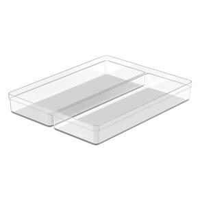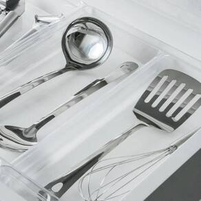 Organizador de Gaveta Acrílico Porta Utensílios Divisória para Talheres Clear 37,5x30x5,6 cm A Linha Clear é a união entre transparência e organização que, independente do ambiente, promove um design perfeito para organizar e aumentar o espaço das suas gavetas. A linha foi pensada para permitir diversas composições e proporcionar máximo aproveitamento de espaço nos ambientes, por isso, traz 7 opções de organizadores modulares que funcionam em diferentes tipos de gavetas. Combine, encaixe e enxergue facilmente o conteúdo, mantendo tudo em ordem. Produzido em material resistente que proporciona alta transparência, fácil higienização e praticidade na hora de organizar.DescriçõesMaterial: Plástico resistenteMedidas:altura:5,6cmlargura:30cmprofundidade:37,5cmPeso: 440gMarca: OuCores disponiveis: Transparente, FumêContem: 1Organizador de Gaveta Acrílico Porta Utensílios Divisória para Talheres Clear 37,5x30x5,6 cmCuidados:Este produto é BPA FreeSugere-se higienizar o mesmo com sabão neutro e esponja macia, evitando produtos abrasivos no processo de limpeza.Imagens meramentes ilustrativas. As cores podem variar de acordo com as configurações do seu monitor ou smartphone