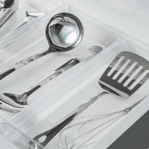 Organizador de Gaveta Acrílico Porta Utensílios Divisória para Talheres Clear 37,5x30x5,6 cm A Linha Clear é a união entre transparência e organização que, independente do ambiente, promove um design perfeito para organizar e aumentar o espaço das suas gavetas. A linha foi pensada para permitir diversas composições e proporcionar máximo aproveitamento de espaço nos ambientes, por isso, traz 7 opções de organizadores modulares que funcionam em diferentes tipos de gavetas. Combine, encaixe e enxergue facilmente o conteúdo, mantendo tudo em ordem. Produzido em material resistente que proporciona alta transparência, fácil higienização e praticidade na hora de organizar. Descrições Material: Plástico resistente Medidas:altura:5,6cmlargura:30cmprofundidade:37,5cm Peso: 440g Marca: Ou Cores disponiveis: Transparente, Fumê Contem: 1Organizador de Gaveta Acrílico Porta Utensílios Divisória para Talheres Clear 37,5x30x5,6 cm Cuidados: Este produto é BPA Free Sugere-se higienizar o mesmo com sabão neutro e esponja macia, evitando produtos abrasivos no processo de limpeza. Imagens meramentes ilustrativas. As cores podem variar de acordo com as configurações do seu monitor ou smartphone Marca: Não Informado Ean: 7908466018207