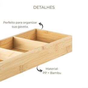Com dimensões de 5,6cm de altura, 15cm de largura e 38cm de profundidade, este organizador é compacto e cabe facilmente em qualquer gaveta. Seu material em bambu é resistente e durável, garantindo uma longa vida útil ao produto.