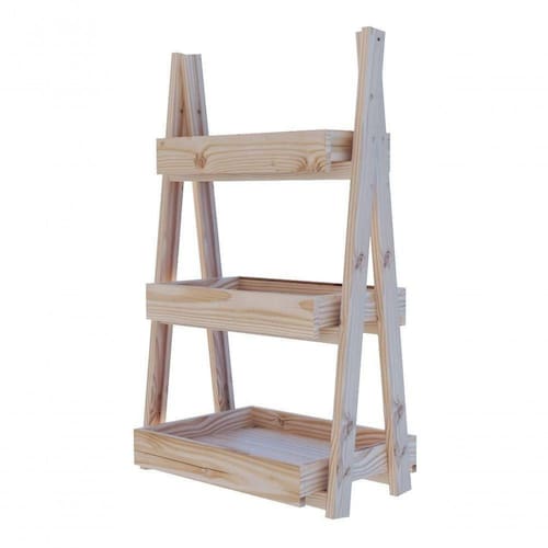 Estante arara com prateleiras e estrutura em madeira maciça de Pinus.