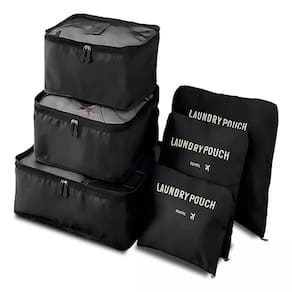 Especificações Técnicas:- Quantidade: 6 peças- Cor: Preto- Material: Poliéster resistente- Fechamento: Zíper- Indicação: Organização de roupas, acessórios, cosméticos e itens pessoais para viagens