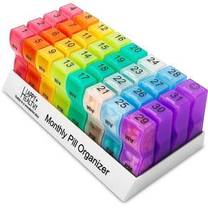 O organizador de comprimidos MedCA para 31 dias possui compartimentos transparentes brilhantes e coloridos. Você poderá verificar se tomou os comprimidos durante o dia e não precisará guardar várias caixas de comprimidos.
