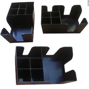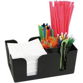 Este é o organizador de mesa bar caddy, visto em todo o mundo e em todos os tipos de estabelecimentos e até mesmo em residencias. É uma das melhores formas de organizar os canudos, guardanapos, saches, entre outros em seu bar, restaurante, lanchonete e até mesmo em sua área gourmet de forma prática e higiênica. Seu compartimento maior encaixa guardanapos e apresenta quatro divisórias menores para palitos, mexedores, sachês e outros acessórios, e também uma sexta divisória para canudos, envelopes de adoçantes, etc.
