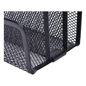 Fabricado em metal aramado com 3 divisórias e tamanho C x A x L 8cm x 14cm x 17,5cm.