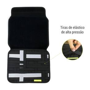 Multifuncionalidade: Metrix não é apenas um organizador de elásticos. Ele possui bolso com zíper para armazenamento adicional. Além disso, funciona como mouse pad na face oposta aos elásticos.