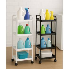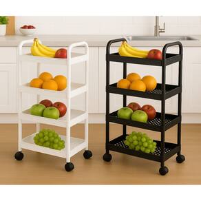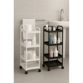 - Material: Plástico - Cor: Branco ou Preto - Tamanho: 31 x 21 x 86 cm - Número de camadas: 4 - Com Rodinhas 360 Graus Marca: Não Informado