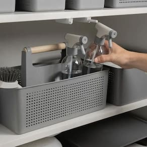 O Organizador Multiuso Flow foi projetado para simplificar o armazenamento e transporte dos itens essenciais de limpeza. Torne as tarefas domésticas mais fluidas e eficientes, mantendo tudo ao alcance quando necessário.