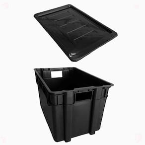 Organizador multiuso caixa 60 lts preta com tampa empilhável Caixa multiuso fechada 60 litros black
