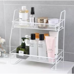 Este organizador proporciona um maior aproveitamento do seu espaço, com 2 andares você organiza mais produtos em um mesmo espaço. Pode ser utilizado no banheiro, quarto, cozinha, ou onde melhor atender a sua necessidade. Prático e bonito, além de organizar, decora o seu ambiente também de maneira simples, já que sua montagen é super prática.Preço por unidade.Medidas: 32cm (altura) x 31cm (comprimento) x 17cm (largura)Especificação técnica:• Fabricado em metal• Montagem fácil, bastando apenas o encaixe do organizador, sem precisar de ferramentas ou parafusos