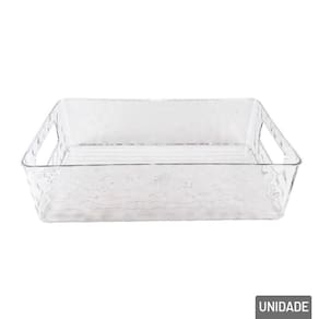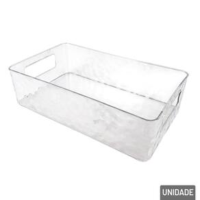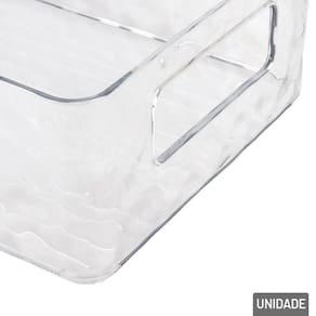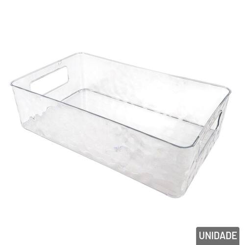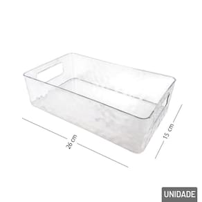 Organizador Multiuso Plástico 15x26cm com Al O Organizador Multiuso Plástico é a escolha ideal para quem valoriza organização com estilo e funcionalidade. Com acabamento texturizado moderno, e alça ergonômica, ele combina praticidade, design e versatilidade em um único produto.\nIdeal para organizar objetos de forma eficiente sem ocupar muito espaço. A superfície com textura não apenas agrega sofisticação ao visual do organizador, como também proporciona maior firmeza no manuseio. Um Produto muito elegante, e que dão um toque decorativo ao ambiente, além de facilitar a categorização de diferentes itens.\nDimensões: Altura 7cm, Largura 26cm, Profundidade 15cm.\nEspecificações:\nMarca : FUXING\nTipo de material : Plástico\nCores ou Estampa : Transparente\nDimensões do Produto : 7 X 26 X 15 CM\nDimensões da Embalagem : 7 X 26 X 15 CM\nPeso Bruto (Gramas) : 0.154