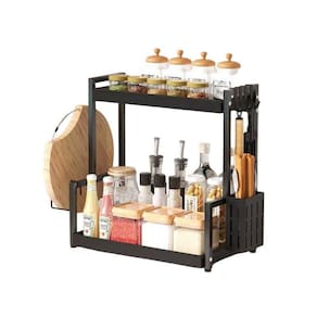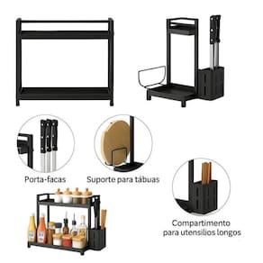 Organizador Multiuso Preto de Metal 2 Andares com Suporte Organizador Multiuso Preto de Metal 2 Andares com Suporte ===================================== Fabricado em metal resistente com acabamento moderno, este suporte oferece estrutura firme e durável, ideal para o armazenamento de temperos, utensílios, potes, talheres, frascos e muito mais.