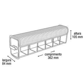 Dimensões: 36,2cm x 8,4cm x 10,55cm (Comprimento x Largura x Altura)