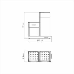 - O corpo do organizador é uma combinação de aço inox e poliestireno.