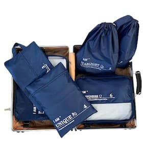Organizador necessaire para mala de viagem kit 6 peças coleção unique - azul marinho nosso kit organizador para mala de viagem de 6 peças é a solução perfeita para tornar suas viagens mais tranquilas e livres de estresseé o companheiro perfeito para qualquer viajante que busca praticidade e eficiência.Economia de espaço: com nossos organizadores de mala, você maximiza cada centímetro da sua bagagem. Comprima suas roupas e acessórios de forma eficiente, permitindo que você leve mais itens sem ocupar muito espaço.Organização simplificada: adeus, bagunça nossos organizadores permitem que você classifique e separe suas roupas por categorias. De roupas íntimas a roupas de banho e acessórios, tudo ficará perfeitamente organizado e fácil de encontrar.Livre de rugas e amassados: mantenha suas roupas impecáveis durante toda a viagem. Nossos organizadores evitam que suas roupas fiquem amontoadas na mala, garantindo que você chegue ao seu destino com um visual perfeito.Acesso rápido e prático: não perca tempo procurando por itens perdidos na sua mala. Com nossos organizadores, você terá fácil acesso a tudo o que precisa, seja durante o voo ou ao chegar ao seu destino.Higiene garantida: mantenha suas roupas limpas separadas das sujas. Nossos organizadores permitem que você mantenha a higiene em dia, evitando o contato entre peças sujas e limpasTamanho: Cubo 5: 40x32cm Cubo 6: 34x28cm Necessaire 4: 38x26cm Necessaire 3: 38x23cm Sacos 2: 40x30cmMaterial: poliéster e plástico . Marca: Mimos E Viagens
