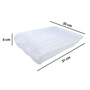 Organizador Ovos Empalhável Porta Ovos Geladeira Com Tampa Porta Ovos Empilhável Porta ovos ergonômico, prático, empilhável e com inclinação. Devido a inclinação, ao retirar um ovo, o restante dos ovos rolará para baixo automaticamente. A altura plana do design da caixa satisfaz o empilhamento de várias caixas mais nítidas, aproveitando ao máximo o espaço limitado da geladeira. Feito de PP PE de qualidade alimentar, o recipiente de material sem BPA mantém os ovos frescos. Perfeito para despensa, freezer, geladeira, armário. Ótimo para armazenamento de ovos. Dimensão: 25 x 31 x 6 cm