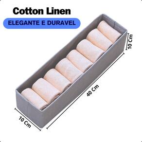 Imagine abrir a gaveta e encontrar suas meias e roupas íntimas perfeitamente organizadas e separadas por cor ou tipo. Com o nosso organizador, cada peça tem seu lugar, facilitando o seu dia a dia e economizando tempo na hora de se vestir. Transforme a organização do seu guarda-roupa com o nosso Organizador de Roupas em Cotton Linen, uma solução prática e elegante para manter suas roupas e acessórios sempre bem organizados e ao alcance das mãos. Material de Alta Qualidade: Feito em Cotton Linen, um material conhecido por sua resistência e durabilidade. Além disso, o Cotton Linen é respirável, ajudando a manter suas roupas frescas e livres de umidade. Seu acabamento superior garante que o organizador mantenha sua forma e beleza mesmo com o uso diário. Destaques do Produto: - Acabamento impecável: bordas reforçadas para maior durabilidade. - Design minimalista: combina com qualquer estilo de decoração. - Fácil de limpar: manutenção simples, pode ser lavado manualmente. Aplicações: - Ideal para organizar peças pequenas como meias, lenços, cintos, roupas íntimas e acessórios. - Perfeito para gavetas, prateleiras ou como divisória dentro de armários. - Também pode ser utilizado para organizar cosméticos, joias ou outros pequenos itens em sua penteadeira. Sem divisorias internasCor: Cinza Dimensões: Comprimento: 40 cm - Largura: 10 cm - Altura: 10 cm Marca: NeoBlue