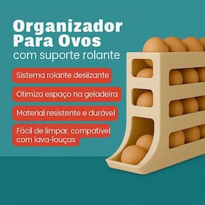 Otimize o espaço da sua geladeira com este organizador de ovos inteligente e funcional. Com design moderno e estrutura compacta, ele acomoda até 21 ovos de forma segura e acessível. O sistema rolante faz com que os ovos deslizem automaticamente para frente, facilitando o uso no dia a dia sem a necessidade de mover outros itens.