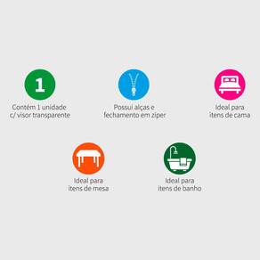 O Organizador G Vizapi Classic Branco é ideal para quem deseja organizar e cuidar melhor das suas roupas de cama, mesa e banho, possui visor transparente para facilitar na visualização e identificação das peças, também tem fechamento em zíper e alças que facilitam o transporte. Ideal para cobertores, edredons finos, colchas finas, roupões, blusões, lençóis, toalhas e etc. Tamanho do Organizador: 60x45x30cm