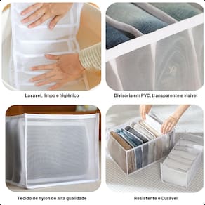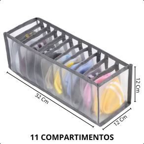 Organizador de Roupas com 11 Compartimentos - 32 cm x 12 cm x 12 cm Cor: CINZA Mantenha suas roupas sempre organizadas e livres de odores com o nosso Organizador de Roupas de Alta Qualidade. Este produto foi projetado para oferecer praticidade e durabilidade, garantindo que suas roupas estejam sempre em perfeito estado. Feito com Materiais de Qualidade Superior Este organizador é confeccionado com TNT80 nas costuras, um material resistente e durável, que proporciona maior longevidade ao produto. As divisões internas são feitas de tela de alta qualidade, permitindo que o ar circule livremente entre as roupas. Isso garante uma ventilação eficiente, evitando o acúmulo de umidade e, consequentemente, protegendo suas roupas de mofos e odores desagradáveis. Você pode armazenar suas peças com tranquilidade, sabendo que estarão sempre frescas e bem cuidadas. Versatilidade de Uso Este organizador de roupas é ideal para guardar diferentes tipos de peças, como roupas íntimas, meias, camisetas, lenços e outros itens de vestuário. Com suas 11 divisórias, ele oferece espaço suficiente para separar e armazenar suas roupas de forma ordenada e acessível. O design compacto permite que você o utilize dentro de gavetas, armários ou até mesmo em malas de viagem, facilitando a organização do seu espaço e mantendo tudo no lugar. Vantagens do Organizador de Roupas Além de ajudar a manter o ambiente organizado, este organizador é leve e fácil de manusear. Suas dimensões de 32 cm de comprimento por 12 cm de largura e 12 cm de altura tornam o produto ideal para diversos tipos de móveis e espaços. Outro benefício é a sua fácil manutenção: o organizador pode ser lavado, garantindo a higiene e a limpeza das suas roupas por mais tempo. Ficha Técnica: - Material das costuras: TNT80 - Divisórias: Tela respirável - Dimensões: 32 cm (comprimento) x 12 cm (largura) x 12 cm (altura) - Quantidade de compartimentos: 11 - Uso recomendado: Organização de roupas íntimas, meias, camisetas, lenços, entre outros - Manutenção: Lavável, garantindo higiene e durabilidade - Cor:CINZA Marca: NeoBlue