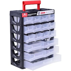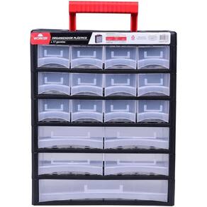 Especificações Gavetas: 17 Dimensões: 315mm x 140mm x 385mm Material: Polipropileno injetado Gavetas: Transparentes Itens Inclusos Organizador Plástico 17 Gavetas Worker Perguntas Frequentes (FAQ) Pergunta: Qual o material do organizador?
