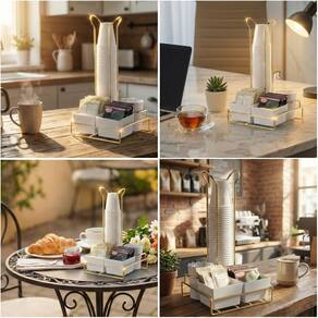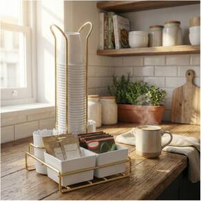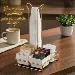 Organizador Porta Copo 50/80ml Sache Mexedor Cozinha Café Dourado Future