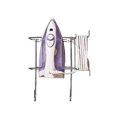 Porta Ferro e Tábua de Passar Este produto é confeccionado em aço cromado. Tem sua fixação por meio de parafusos e seu uso pode ser tanto em parede como em madeira. Ele organiza o ferro de passar, assim como seu fio e seus ganchos penduram a tábua, deixando o ambiente da lavanderia mais clean. Medidas totais: 250x270x90mm Código: 4173