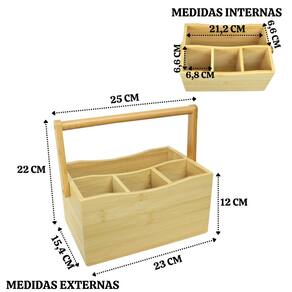 PORTA TALHERES DE BAMBU COM ALÇA 22X15,5X25CM - 6102