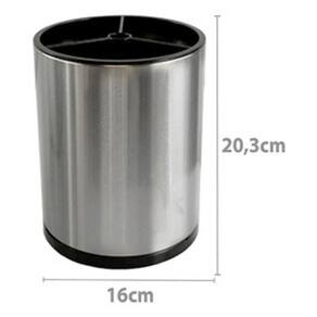 Modelo: Porta Utensílios Giratório Material: Aço Inox e Plástico Altura: 20,3 cm Largura (Diâmetro): Ø 16 cm Mecanismo: Base giratória com rotação 360° Divisórias: 03 compartimentos internos Recursos Funcionais: Sistema de escoamento de água e base antiderrapante Limpeza: Estrutura desmontável Garantia: 90 dias contra defeitos de fabricação