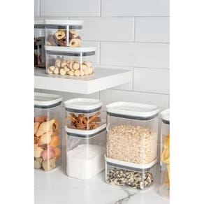 Organizador pote hermético block 2l transparente ou Cor: branco Maple decor oc800 Conteúdo: 1 pc organizador hermético block 2 l Dimensões 11 x 11 x 30cm Organizador hérmeticos block pote vedação herméticos Pode ser montados em blocos, empilháveis Adaptando a qualquer tipo de armário, e varias organizações. Como alimentos da cozinha, doces, escritórios, capsulas de café O pote com vedação e bpa free armazena e conserva os alimentos. Por os potes serem transparentes, tem-se a facilidade de visualização do que está armazenado sem precisar abrir os recipientes. O recipiente pode ser empilhado, assim ocupando espaços reduzidos de armários e bancadas. Conserva os alimentos por mais tempo. Empilhável e modular. Pote porta mantimento Vedação hermética em silicone Livre de bpa Armazene seus alimentos Práticos, e modulares. Empilhe, encaixe e enxergue facilmente o conteúdo. Práticos, herméticos e modulares os organizadores block são indispensáveis para auxiliar você na organização da sua cozinha. Material: - poliestireno; - silicone. O pote possui sua tampa com vedação em silicone, que bloqueiam a entrada do ar, protegendo o alimento do ambiente externo, mantendo-os com sua textura e sabor por mais tempo. É perfeito para armazenar biscoitos, cereais e variados tipos de alimentos com segurança. Marca: Não Informado