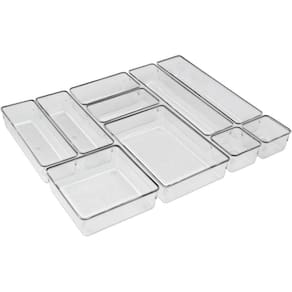 Modular, para se adequar a vários tamanhos de gavetas e criar conjuntos.