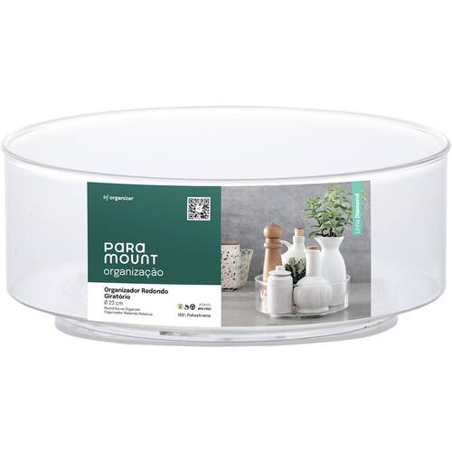 Organizador Redondo Diamond Giratório Paramount Plástico Transparente - 23cm de Diâmetro Este organizador da Paramount, modelo Diamond, é a peça ideal para trazer dinamismo e praticidade para qualquer superfície. Sua função essencial é o acesso rápido e 360° aos itens armazenados (como temperos, maquiagens, medicamentos ou cremes) através de sua base giratória. O design redondo em plástico transparente de alta resistência com a textura Diamond otimiza bancadas e armários profundos, garantindo durabilidade, visualização total do conteúdo e facilidade de limpeza. Ficha Técnica código: 1131 marca: Paramount kit composto por: 1 (uma) Unidade Giratória cor: Transparente material: Plástico peso: 0,270 kg (270 g) Altura: 8,5 cm Largura: 23 cm (Diâmetro) Comprimento: 23 cm (Diâmetro)